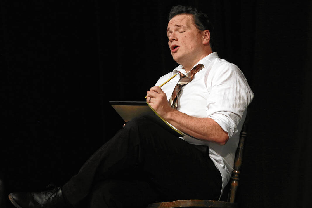 Colin Hammond as Joe Boyd sings “Goodbye Old Girl” during a rehearsal for the Mill Race Theatre Company production of “Damn Yankees” in the Judson Erne auditorium at Columbus North High School on July 10.