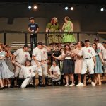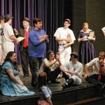 The cast of Mill Race Theatre Company’s production of “Damn Yankees” rehearses in the Judson Erne auditorium at Columbus North High School on July 10.