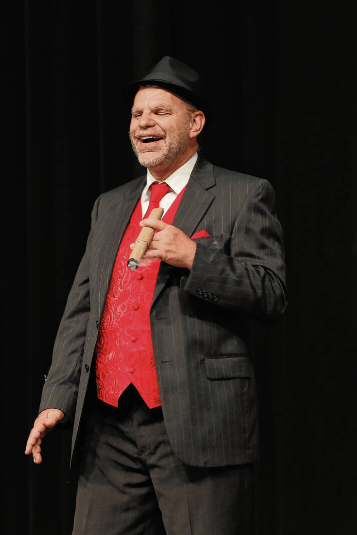 Joe Smith as Mr. Applegate rehearses for the Mill Race Theatre Company production of “Damn Yankees” in the Judson Erne auditorium at Columbus North High School on July 10.