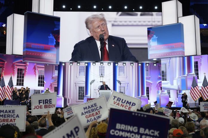 MILWAUKEE (AP) — Donald Trump, somber and bandaged, accepted the GOP presidential nomination on Thursday at the Republican National Convention in a speech that described in detail the assassination attempt that could have ended his life just five days earlier before laying out a sweeping populist agenda, particularly on immigration.