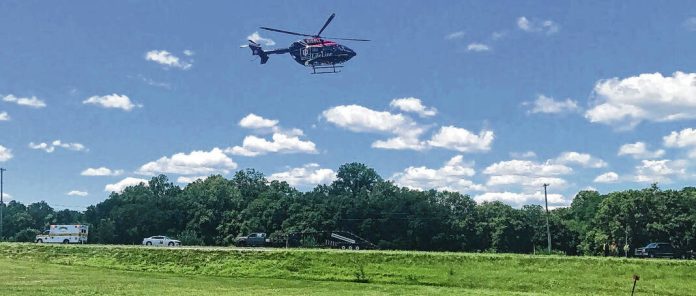 Mark Webber | The Republic Lifeline helicopter leaves the scene of a fatal accident at U.S. 31 north and County Road 800N on Thursday.