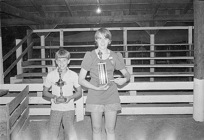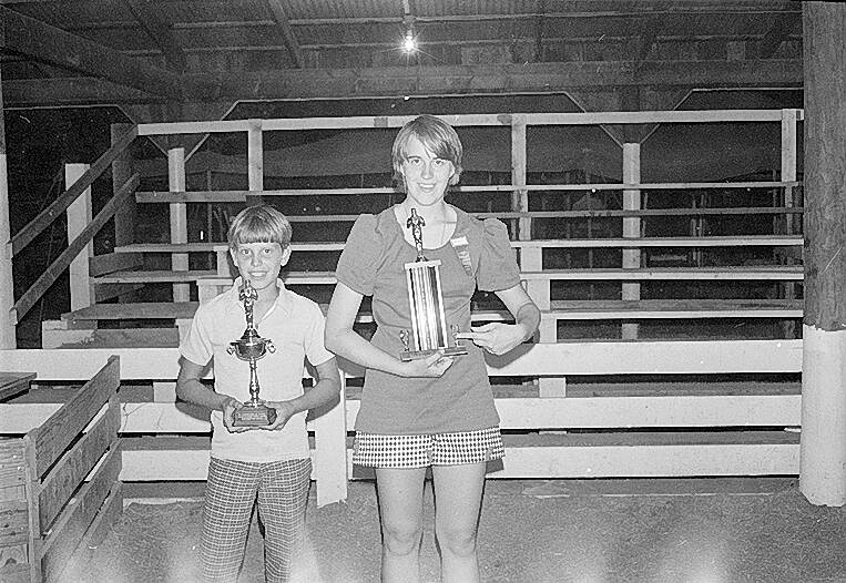 Jim Wint, 11, was named Grand Champion in 4-H soybeans with his entry in the stalk division and Cindy Carson, 17, was named Outstanding 4-H Livestock Exhibitor at the Bartholomew County 4-H Fair on July 30, 1974.