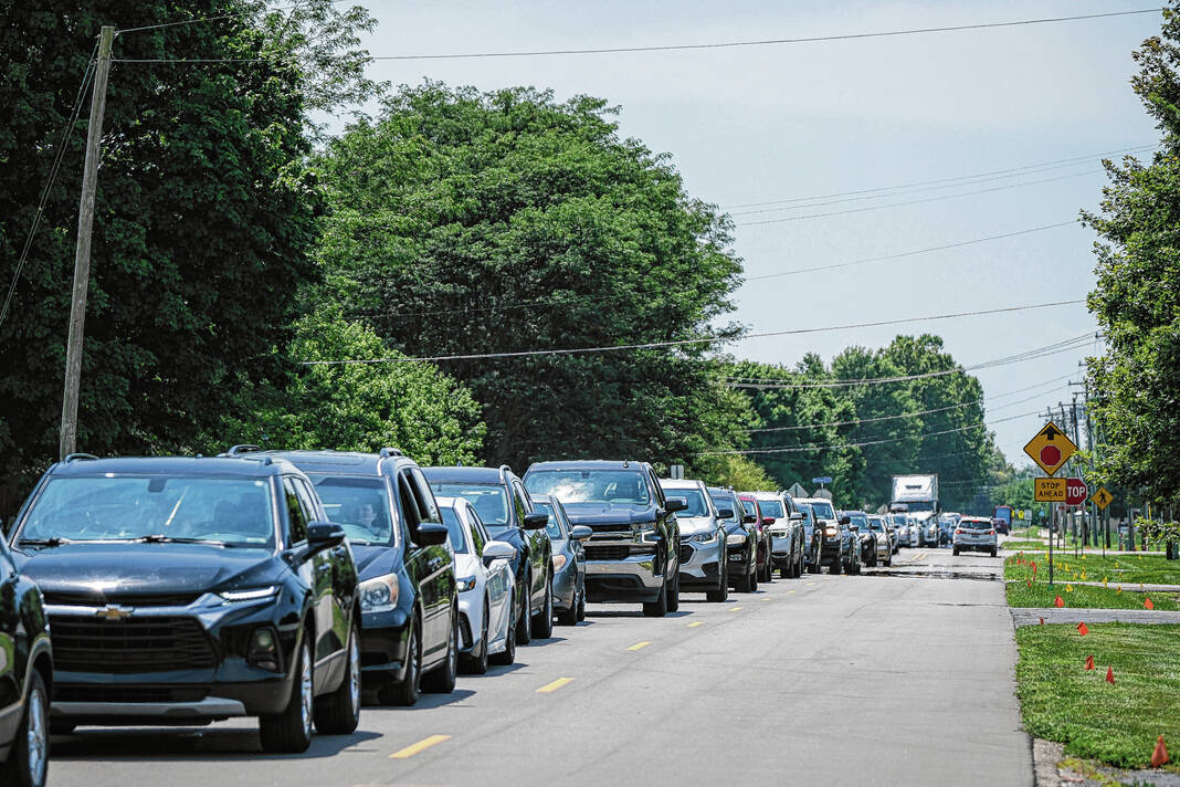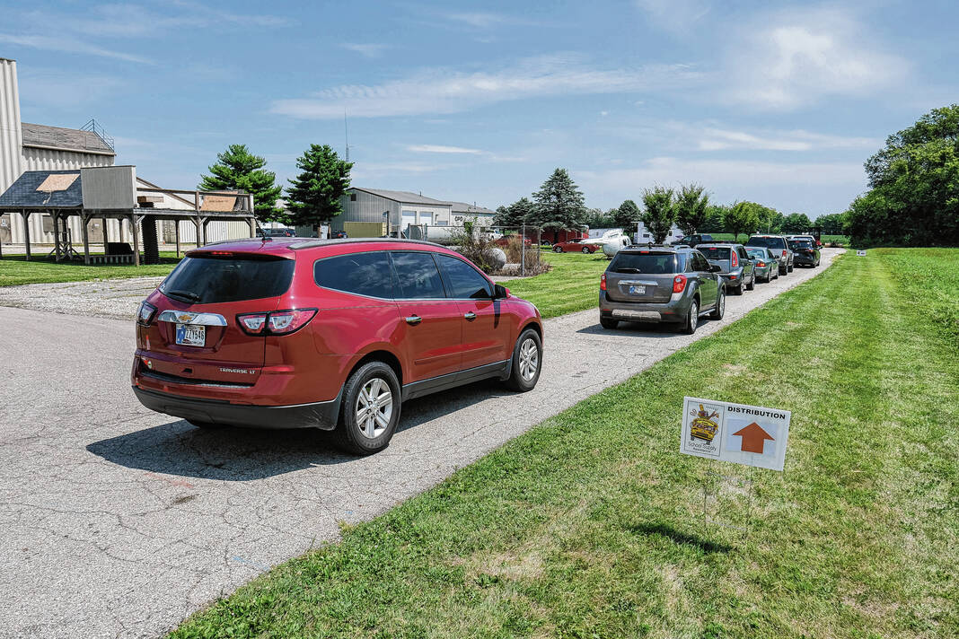 The Bartholomew County School Supply Assistance Program (BCSSAP) held its annual distribution event on Thursday afternoon at the Columbus Fireman’s Cheer Fund warehouse. Families lined up near Columbus Municipal Airport before cruising through the drive thru event to get backpacks stuffed with school supplies.
