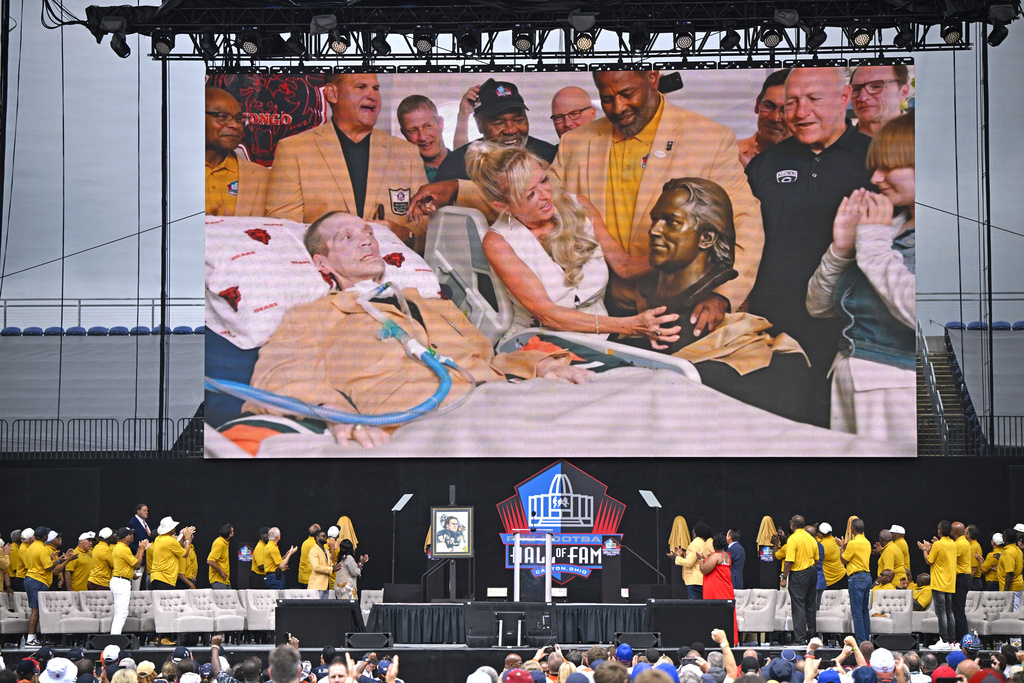 Battling ALS and bedridden in the advanced stages of the neurological disease, the 66-year-old two-time All-Pro defensive tackle was the second player enshrined in the Pro Football Hall of Fame among seven members of the Class of 2024 on Saturday.