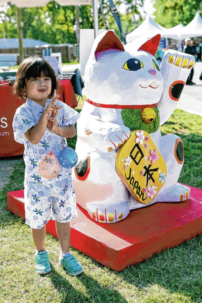 Carla Clark | For The Republic Shinichi Taneno poses for a photograph with a Kanji, cat, at host country Japan’s booth during Ethnic Expo in Columbus Oct. 13, 2023.