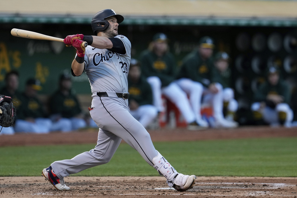 OAKLAND, Calif. (AP) — Andrew Benintendi hit a two-run homer and the Chicago White Sox snapped their American League record-tying losing streak at 21 games on Tuesday night, beating the Oakland Athletics 5-1.