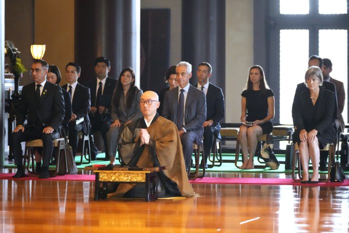 U.S. Ambassador Rahm Emanuel instead attended a ceremony at a Buddhist temple in Tokyo honoring the Nagasaki atomic bombing victims, joined by his Israeli and British counterparts, Gilad Cohen and Julia Longbottom.