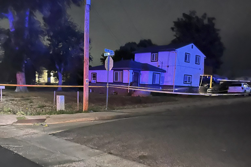 DENVER (AP) — Four men were fatally shot and a woman was hospitalized with gunshot wounds during a spate of weekend violence in the Denver suburb of Commerce City. A person of interest in one of the cases was later found dead of a self-inflicted gunshot, police said Sunday.