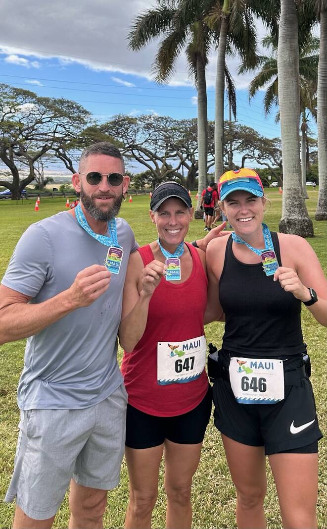 Julia, Scott and Emma Wilson get ready to begin a half marathon in April in Maui, Hawaii.