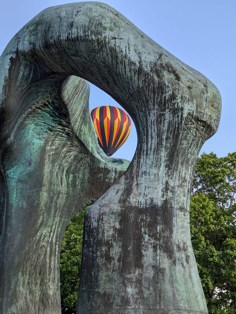Linda Wise photographed this hot air balloon, as seen through the Large Arch, floating over the Cleo Rogers Memorial Library while listening to the Jazz Band performance on Friday, July 19.