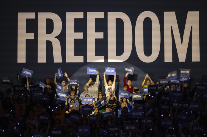 Even as newly energized Democrats lean into personal freedom as a pillar of their campaign, the Trump camp isn’t willing to cede the messaging ground on that word, liberty or any other patriotic themes.
