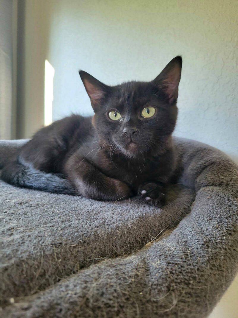 When Farm came to the shelter she was terrified of people. But one of our amazing foster homes (and very social kitties) quickly helped her learn people aren’t so bad. She is even comfortable around cat-friendly dogs. New things can still be scary so her ideal home would be one without children but she is great with other cats and dogs.