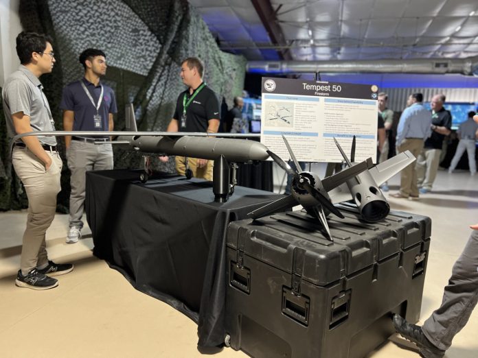 San Diego-headquartered Firestorm Labs, for example, showcased its “Tempest 50” drone, which can be easily assembled, disassembled and transported, in addition to being “rapidly produced” at a low cost, according to representatives at the defense technology startup.