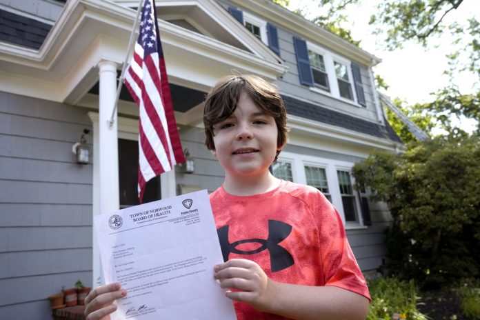 But a few days after setting up a stand and serving up vanilla, shaved chocolate and fluffernutter to about 20 people, Danny’s family received a letter from the Norwood Board of Health ordering it shut down. Town officials had received a complaint and said that the 12-year-old’s scheme violated the Massachusetts Food Code, a state regulation.