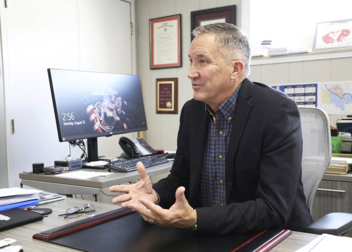 Rob Miller, superintendent of Bixby Public Schools, speaks about the Bible mandate in Oklahoma schools on Aug. 12 at the administration offices in Bixby, Okla.