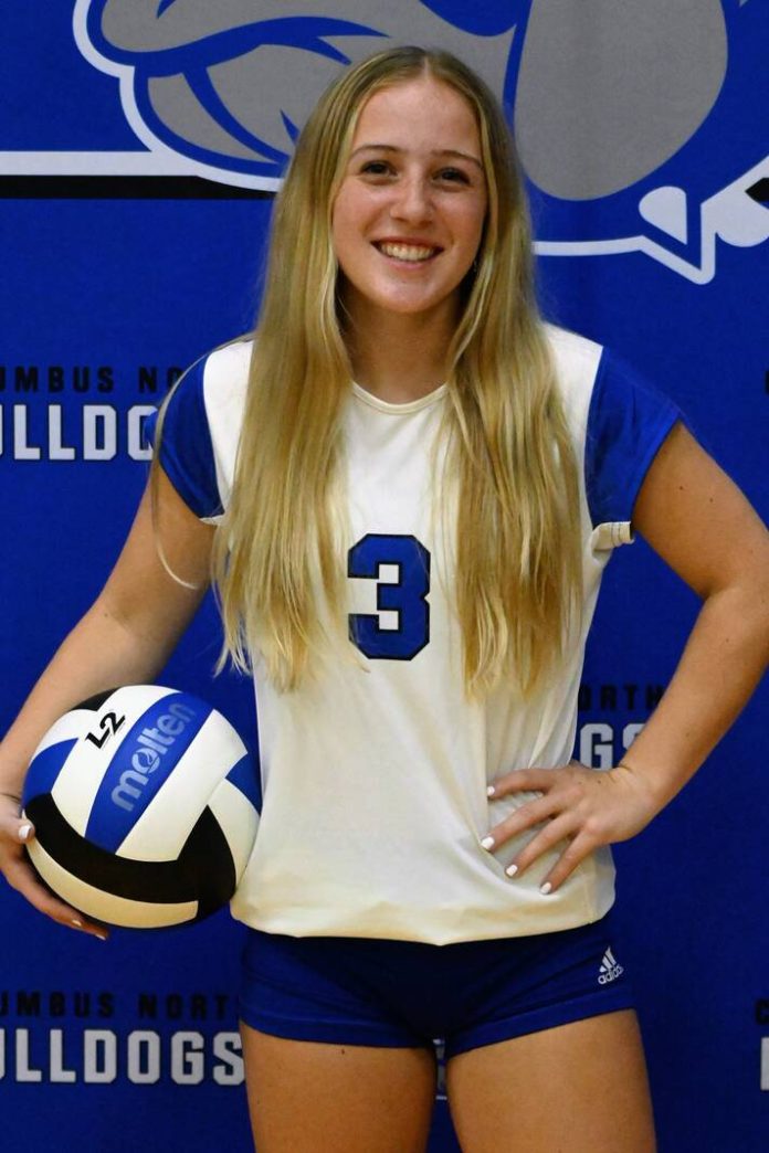 Also for Columbus North, Karen Dutro tallied eight kills and two blocks, and Elaina Penrod and Tania Maldonado each had two blocks. Lexi Denny added five assists.