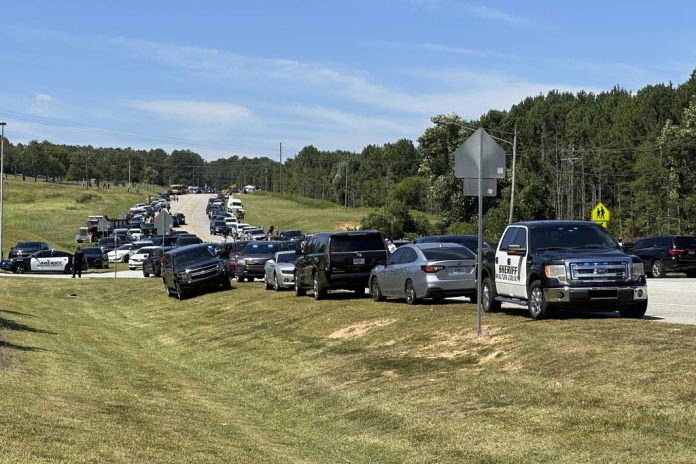 Helicopter video from WSB-TV showed dozens of law enforcement and emergency vehicles surrounding Apalachee High School in Barrow County, about 50 miles (80 kilometers) northeast of Atlanta.