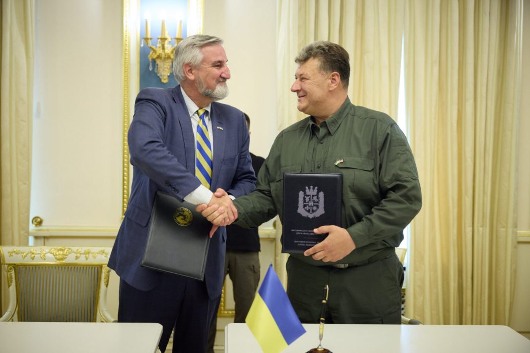 Holcomb said Indiana and Zhytomyr had “overlapping similarities” in terrain, industrial sectors — manufacturing, life sciences, logistics — and beyond.