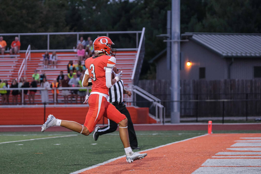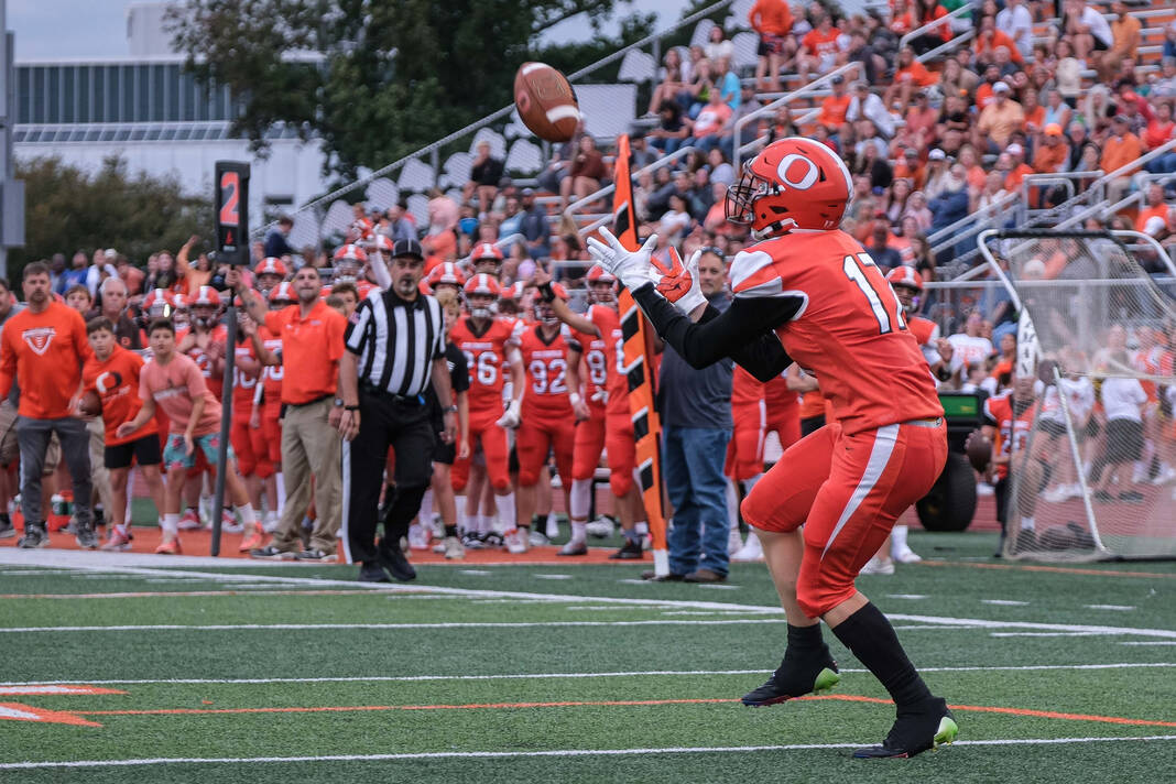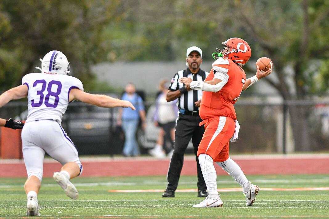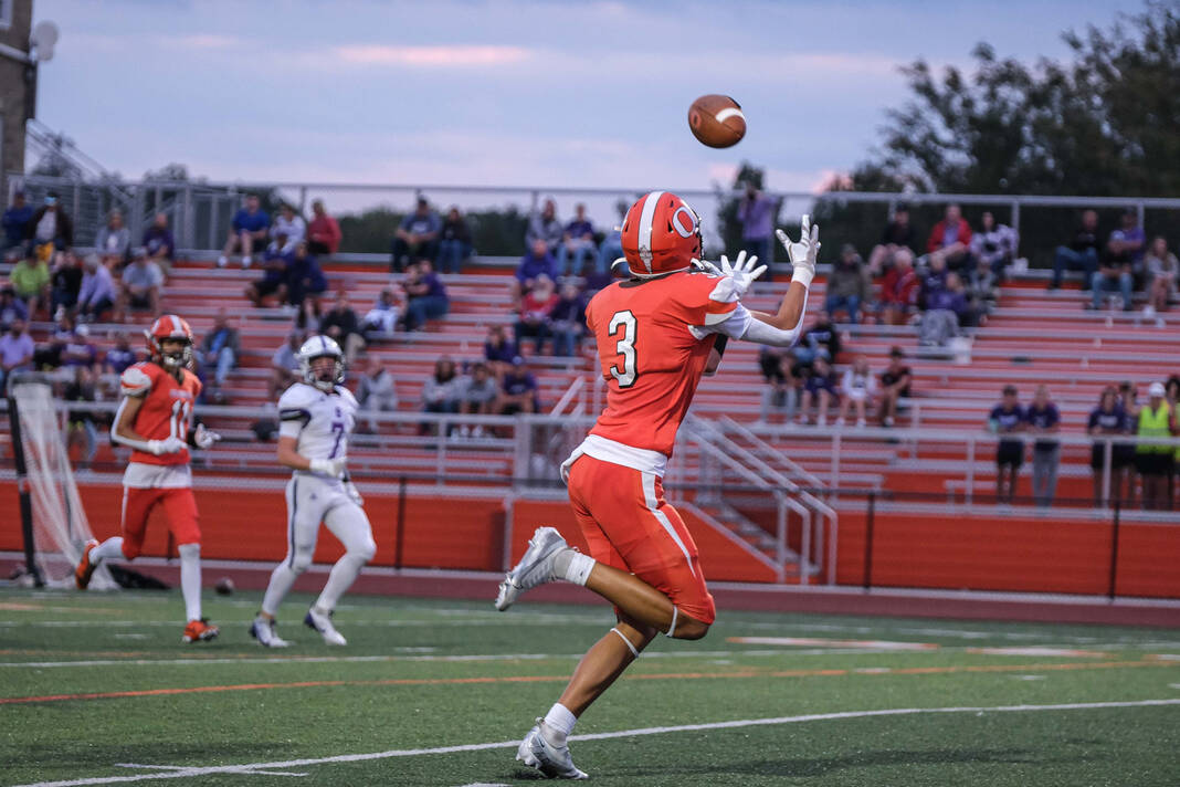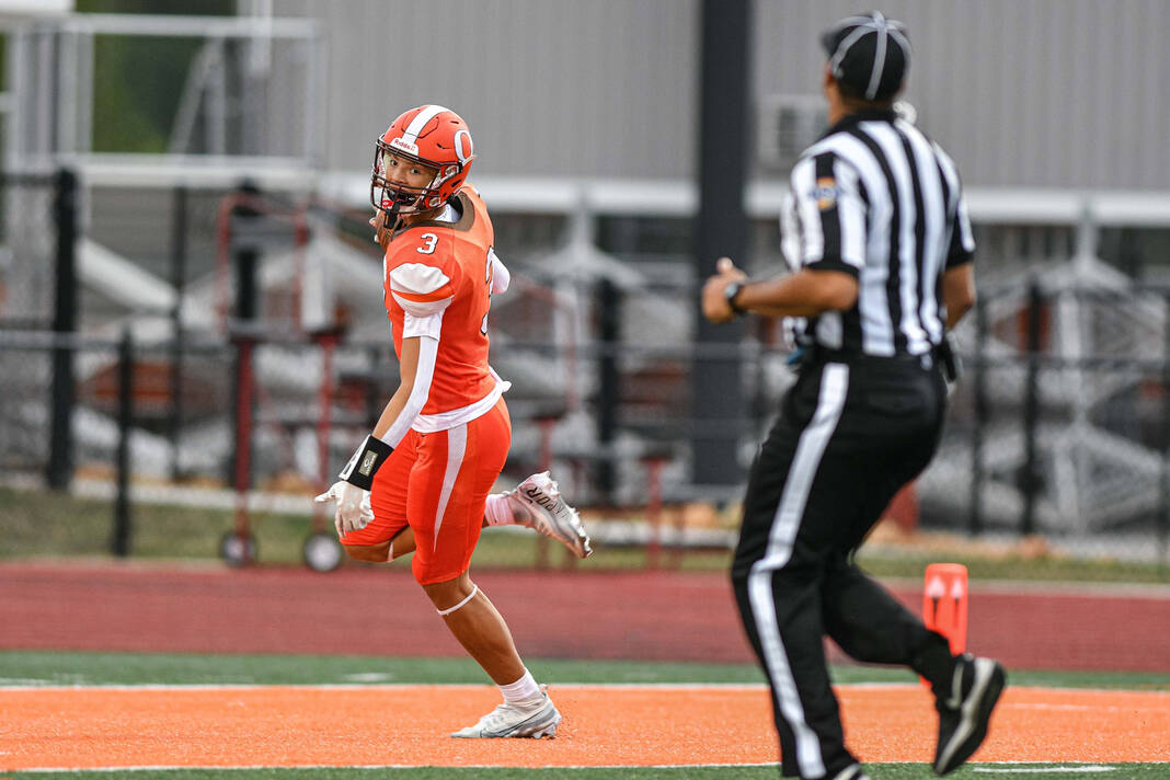 The Olympians needed only two plays on their second series. Villarreal threw over the middle to Keaton Lawson, who got behind the defense, tipped the ball to himself, and outran the secondary to the end zone for an 80-yard touchdown.