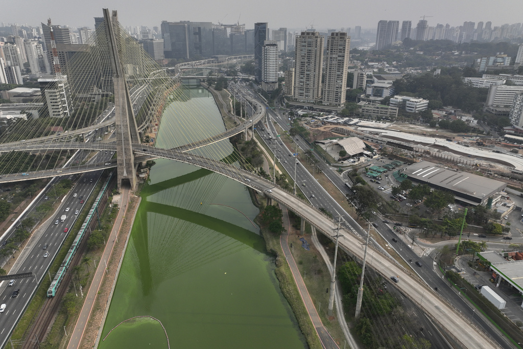 SAO PAULO (AP) — A major river in the Brazilian metropolis of Sao Paulo is suddenly emerald green and clear skies this week turned from blue to grey. In the late afternoon, the sun’s rays filtering through the smoky haze exhibit the color of deep orange.