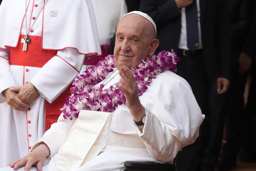 It was Francis’ last event before he boarded the Singapore Airlines A35-900 plane for the 12-hour, 35-minute flight back to Rome to complete the longest and farthest trip of his pontificate.