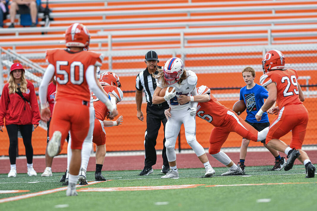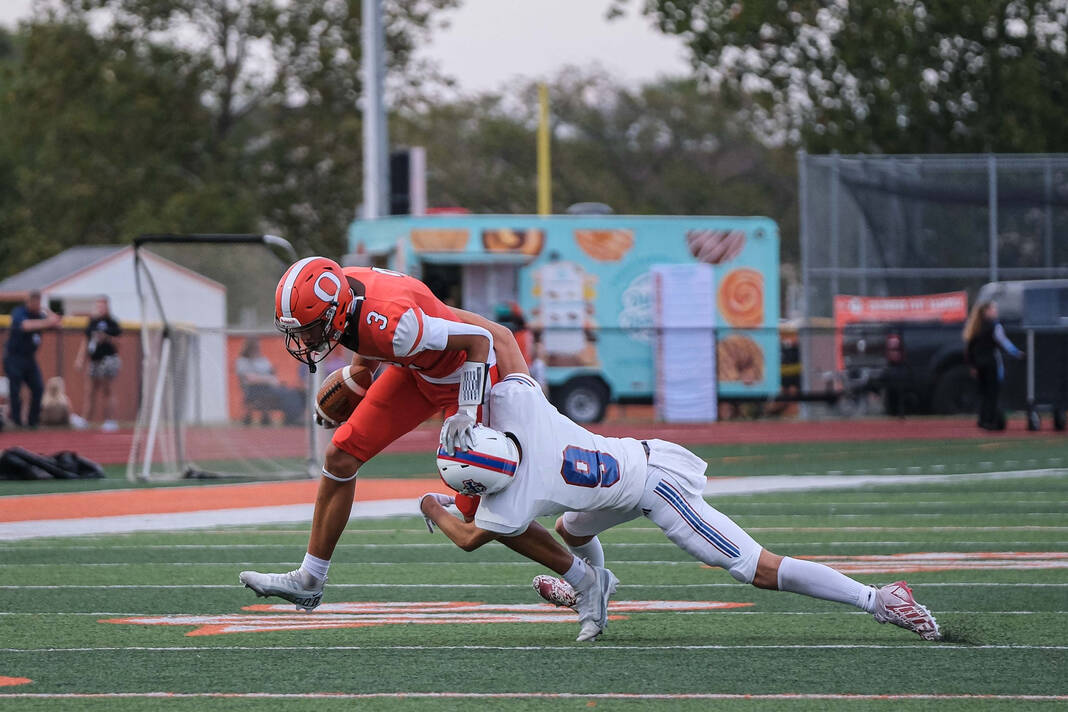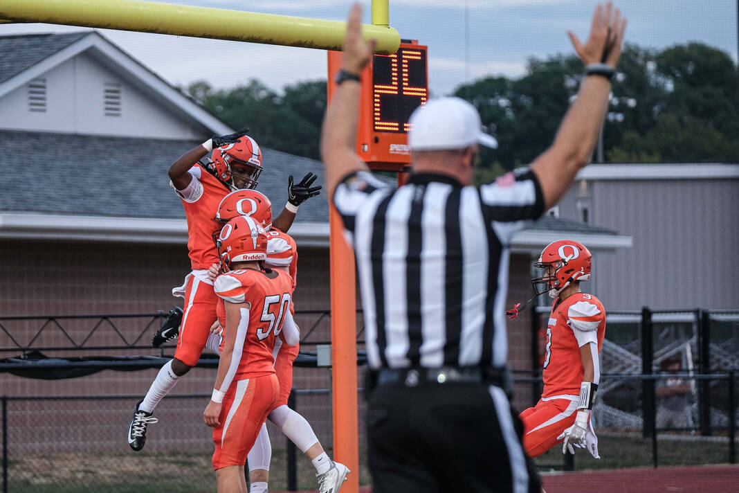 Christian Guerra went 8 for 9 on extra points for the Olympians. Former soccer player Aarav Nihalani joined the football team a couple weeks ago and had enough practices in to kick off for the first time on Friday.
