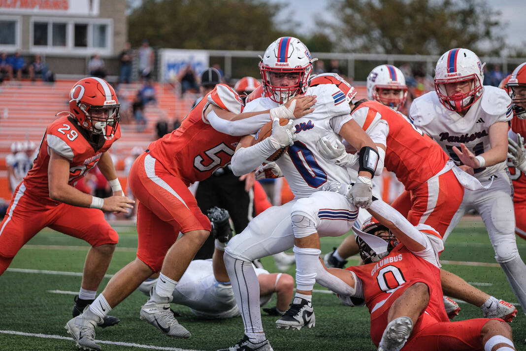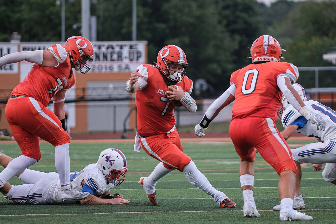 The Olympians took advantage of a fumble recovery and three interceptions to put 35 points on the board in the second quarter on their way to a 62-7 Hoosier Hills Conference win, their 27th consecutive victory over Jennings County.