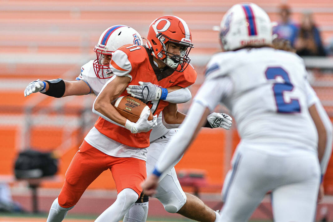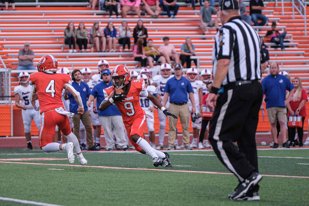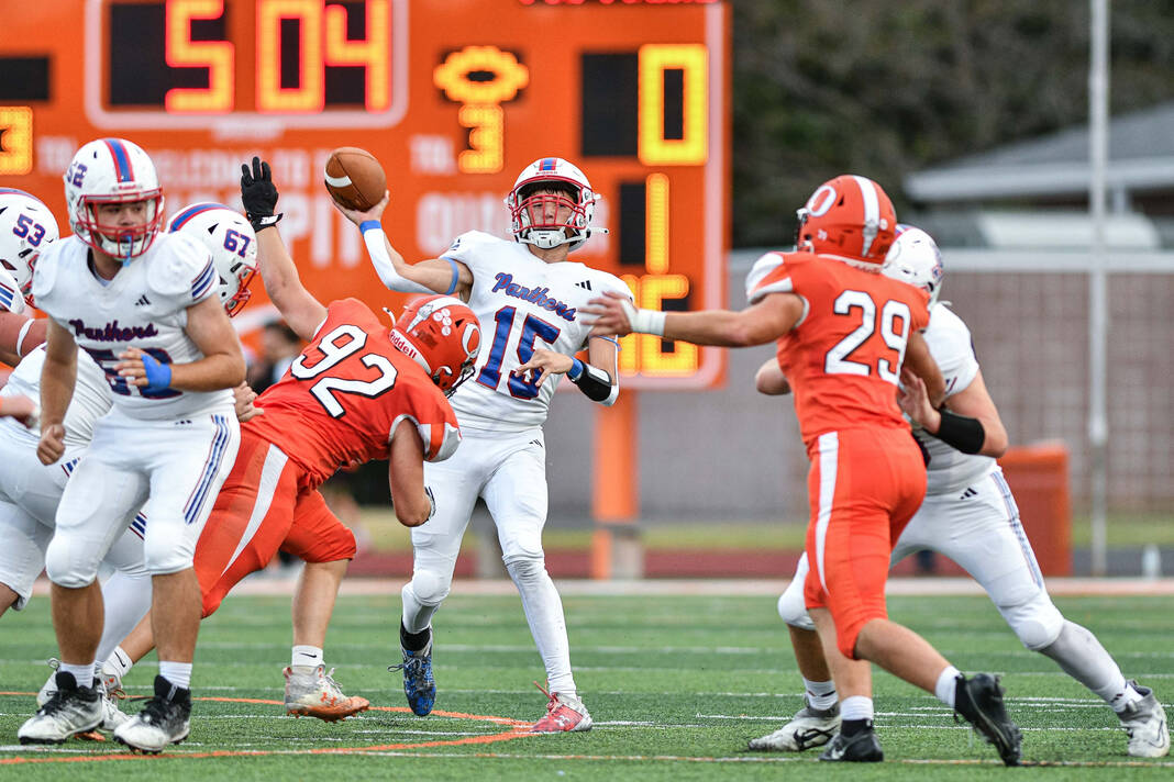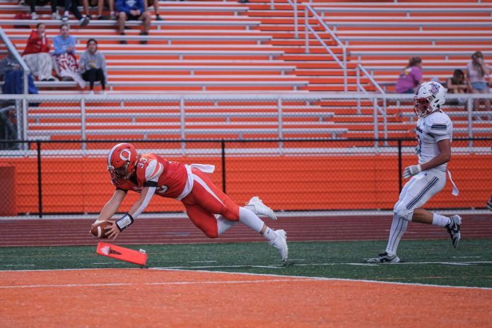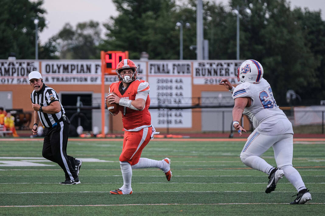 Leading only 7-0 after one quarter, the Olympians scored on the first play of the second on the second Kyson Villarreal-to-Keaton Lawson touchdown pass of the night. Three plays later, they made it 21-0 after a 21-yard interception return by Robert Young.