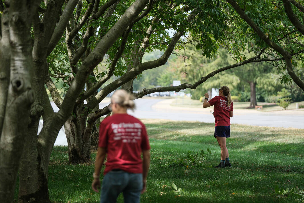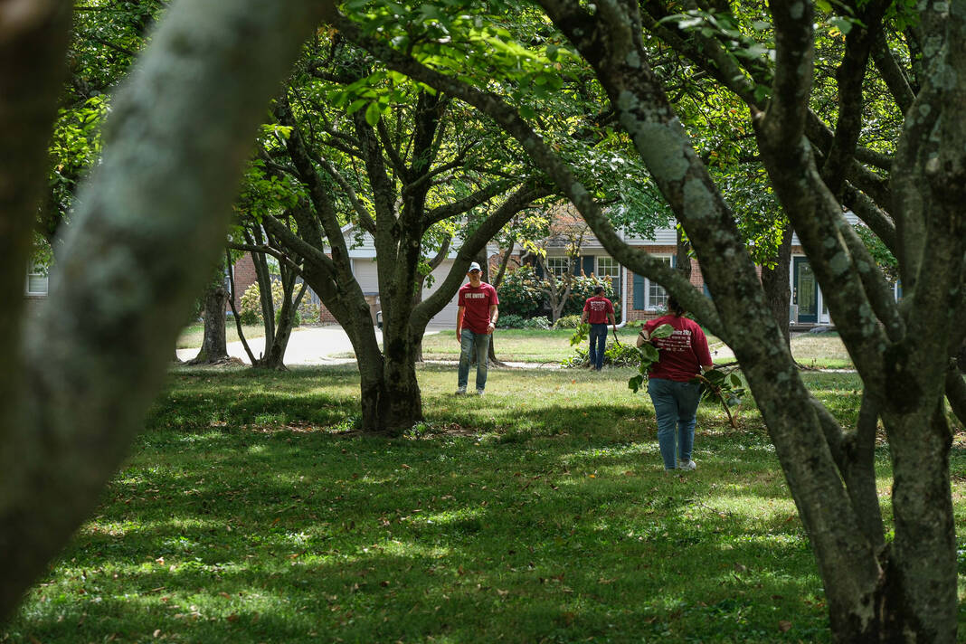 Mike Wolanin | The Republic Volunteers gather to help clean up the landscaping around the former North Christian Church on the United Way Day of Service in Columbus, Ind., Thursday, Sept. 12, 2024.