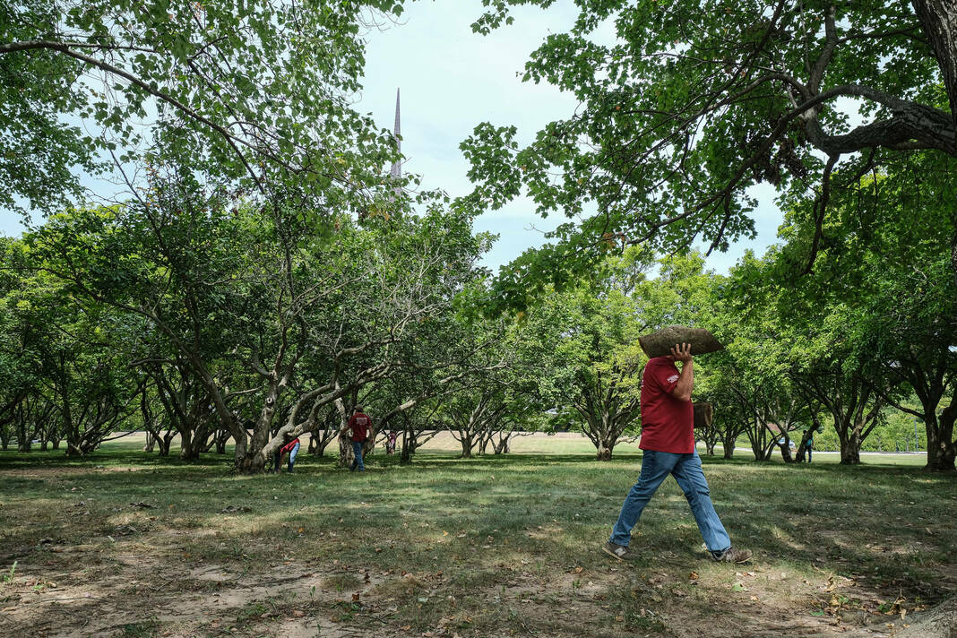 “I just want to work together with others to be able to support the community,” said volunteer Alexey Pivovarov, who worked at Columbus Animal Care Services on the day last year, spreading mulch.
