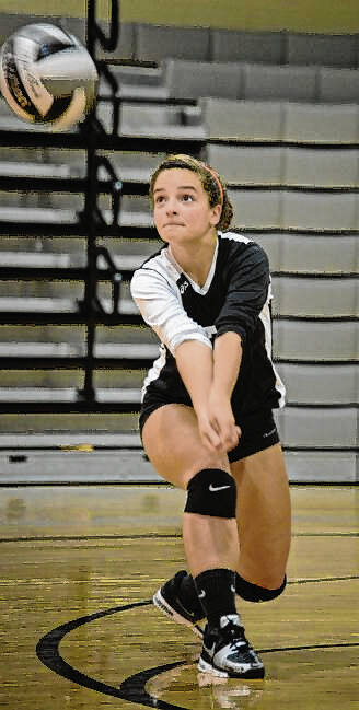 Hauser’s Katelyn Yarling eyes an incoming return from Crothersville during a home volleyball match on Sept. 15, 2014.
