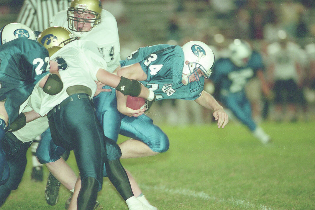 Columbus North Bull Dog Caleb Kleinhenz fights for extra yards against a tough Decatur Central defensive line during Sept. 17, 1999’s game.