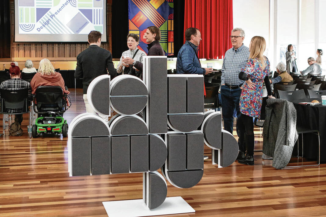 Carla Clark | For The Republic People mingle during the 2023 Exhibit Columbus, Public by Design, presentations at the Commons, Columbus, Ind., Saturday, February 25, 2023.