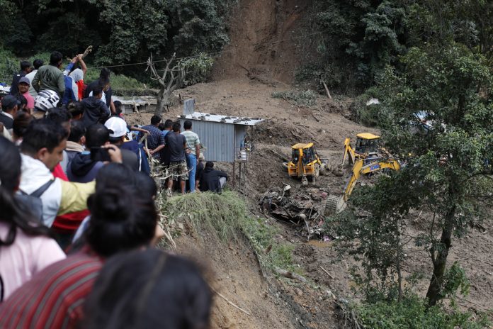 Police officers and soldiers were assisting with rescue efforts, while heavy equipment was used to clear the landslides from the roads.