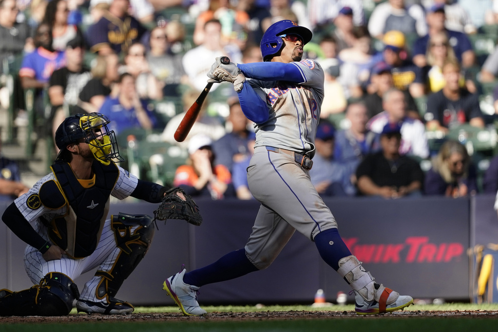 MILWAUKEE (AP) — Francisco Lindor homered and drove in two runs, David Peterson pitched seven brilliant innings and the New York Mets moved within one win of a playoff berth Sunday with a 5-0 victory over the Milwaukee Brewers.