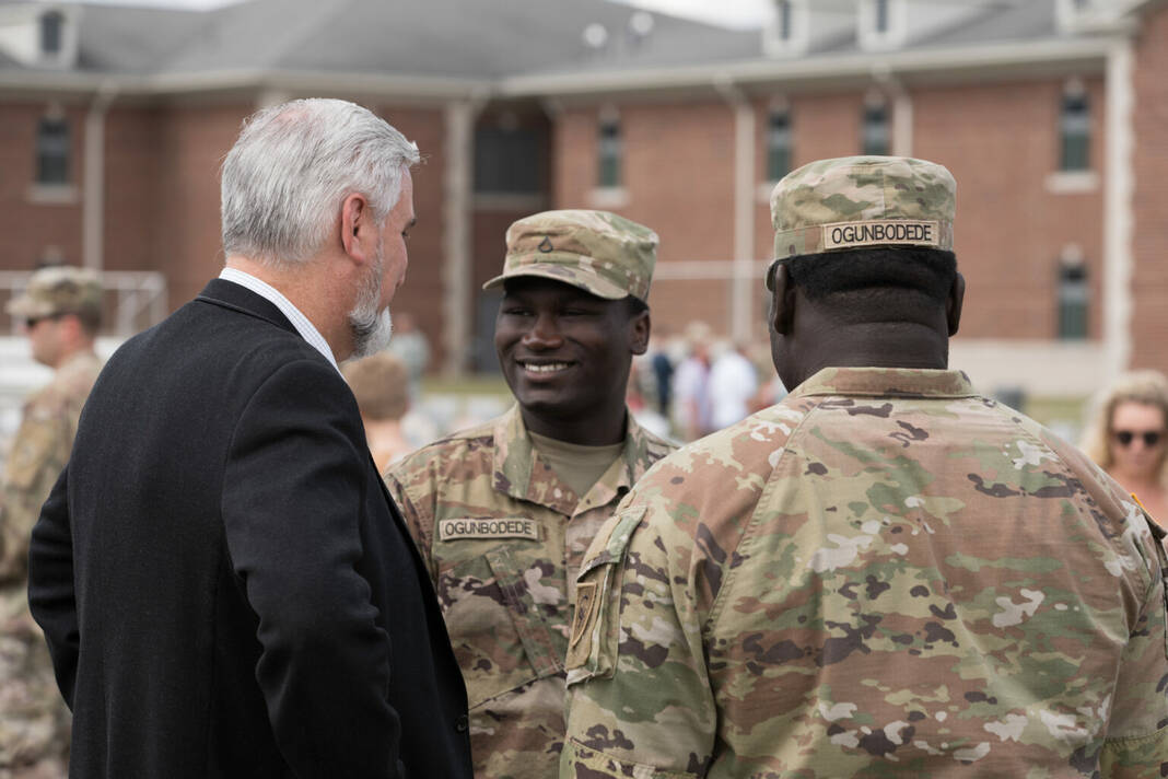 Gov. Eric Holcomb meets with members of the Indiana National Guard on Sept. 25, 2024, at Camp Atterbury. (From Gov. Eric Holcomb’s official Flickr)