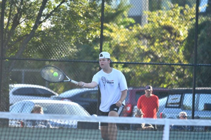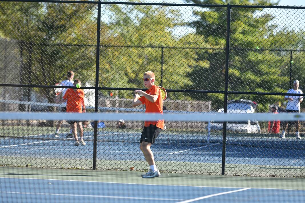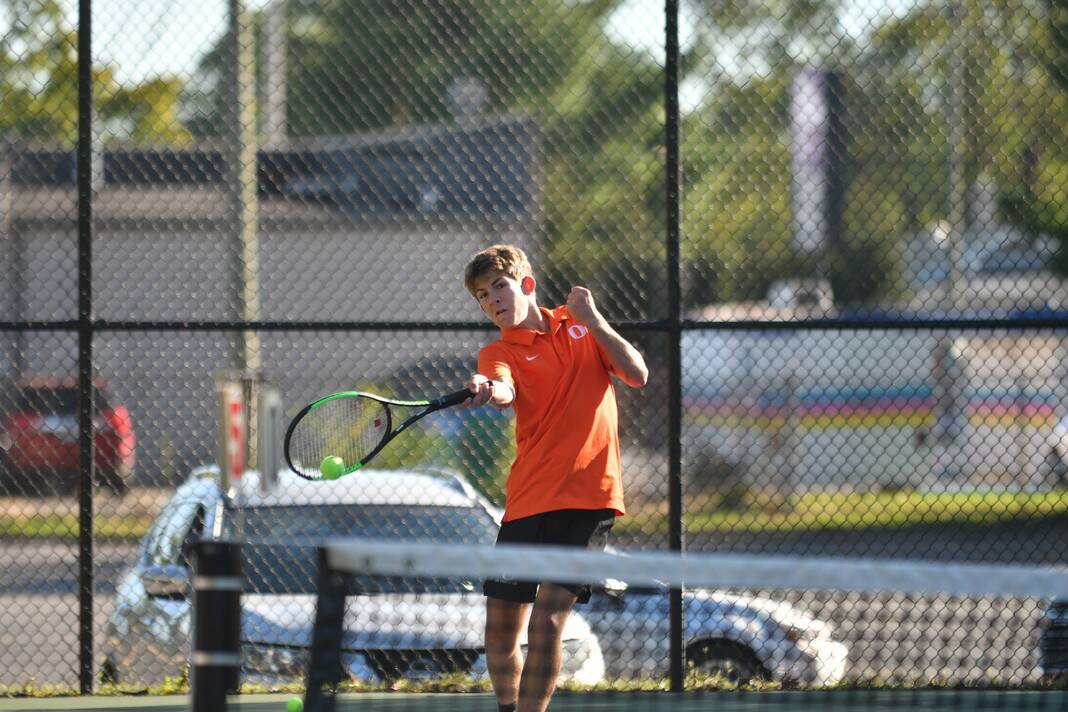 The Olympians will have one player moving on. Senior Tyler Ernst advanced in the individual tournament by virtue of his 6-4, 6-1 win against Hunter Pappano at No. 1 singles.