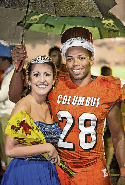 Caitlyn Williams and Markell Jones were named Columbus East Homecoming Queen and King on Oct. 3, 2014, during halftime of the Olympians’ football game against Madison.