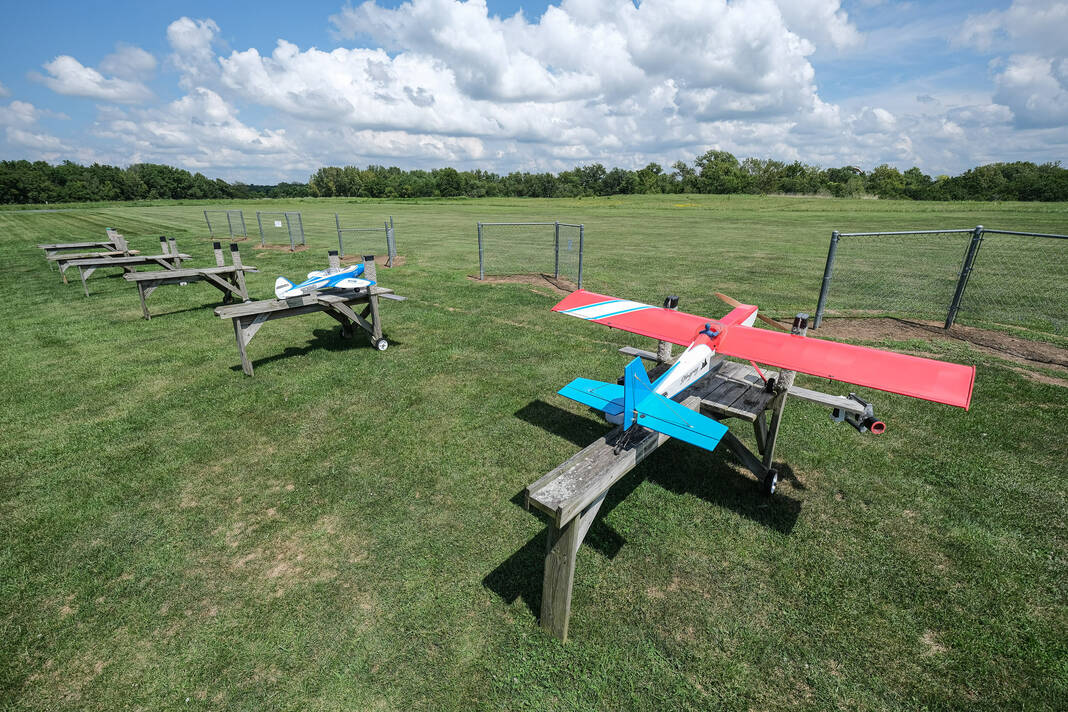 Planes are seen the preparation area at Jim Murray Flying Field for radio controlled aircraft in Columbus, Ind., Thursday, Aug. 8, 2024.