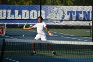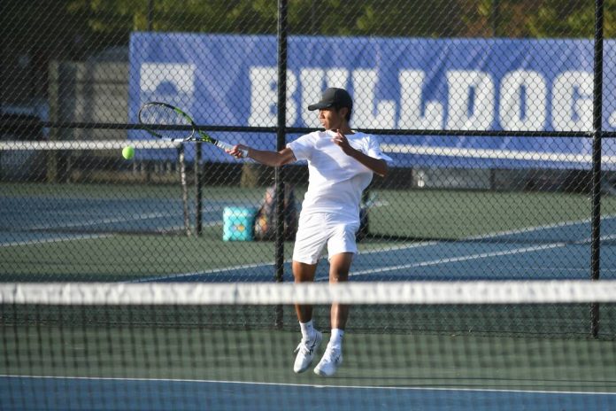 North’s Hank Lin got off the court first with a 6-0, 6-0 win against Parker Thompson at No. 1 singles.