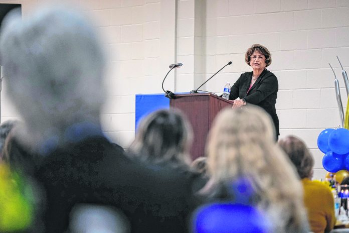 Mike Wolanin | The Republic Sarla Kalsi delivers the keynote speech during the annual Great Girls, Wonderful Women event at Foundation for Youth in Columbus, Ind., Thursday, Oct. 10, 2024.