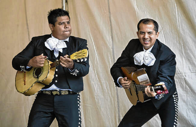 Miguel Landeros, left, and Alejandro Radilla of Mariachi Sol Jalicinese perform on the First Street stage at the opening of the Ethnic Expo on Oct. 10, 2014.