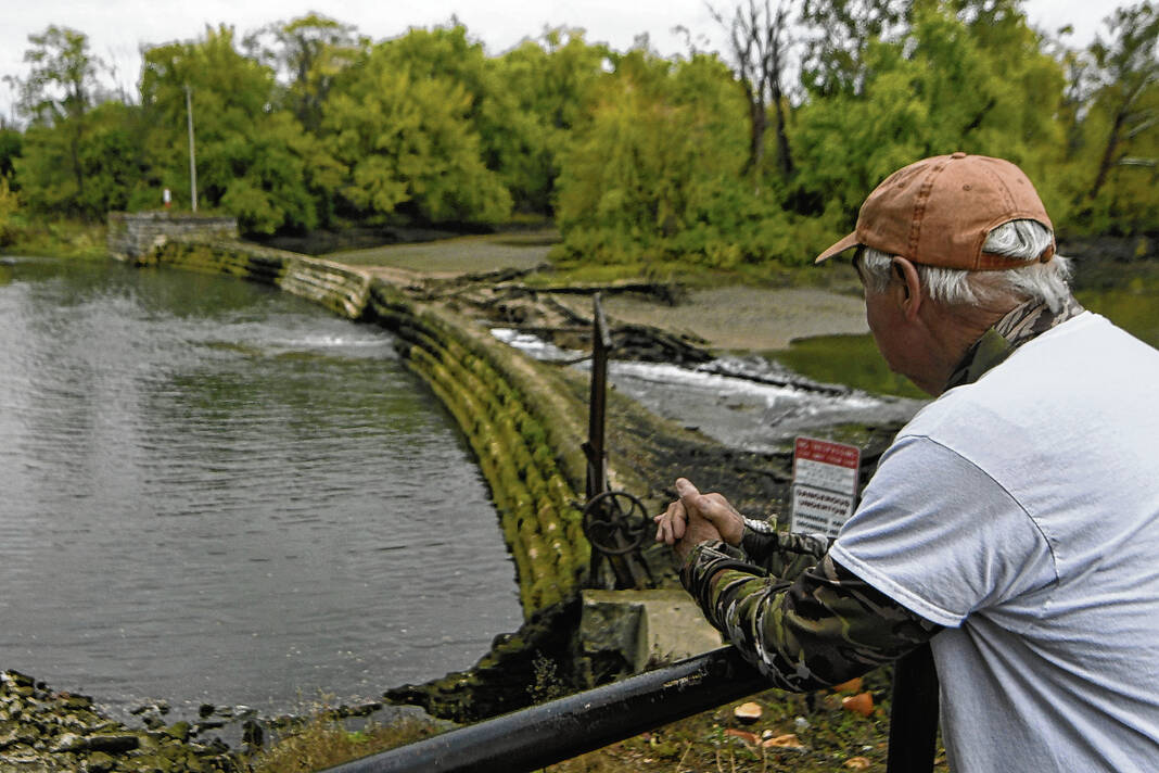 Edinburgh resident Ken Neville gazes at the Thompson Mill Dam in October 2023, days after the historic dam broke.
