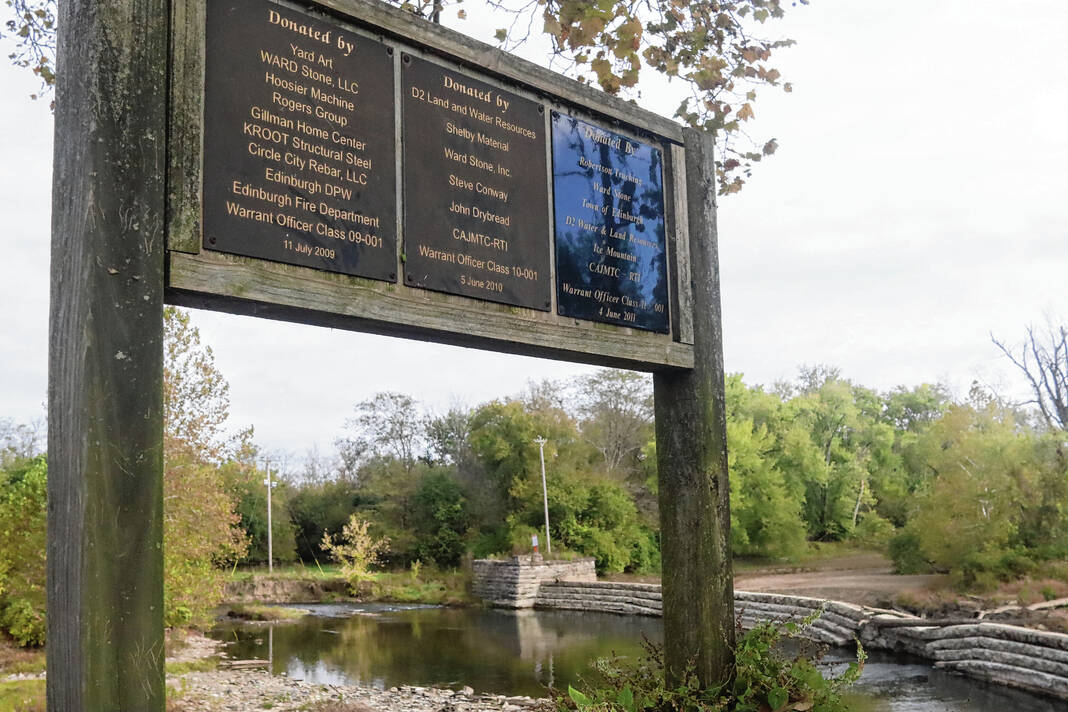 The Thompson Mill opened in Edinburgh in 1826 and is said to have been a key supplier of flour to the Union Army during the Civil War, according to a historic marker for the mill. The current dam was built during a rebuilding of the mill following a fire. The 1884 built dam is said to be among the first stone dams to be built in the Midwest, the marker says.