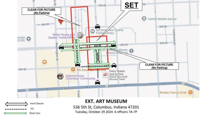Photo provided Street closings for movie filming at the Bartholomew County Public Library are shown.