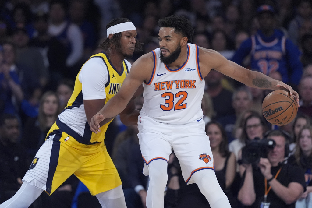 NEW YORK (AP) — Karl-Anthony Towns had 21 points and 15 rebounds in his Knicks home debut, Jalen Brunson scored 26 points and New York routed the Indiana Pacers 123-98 on Friday night.