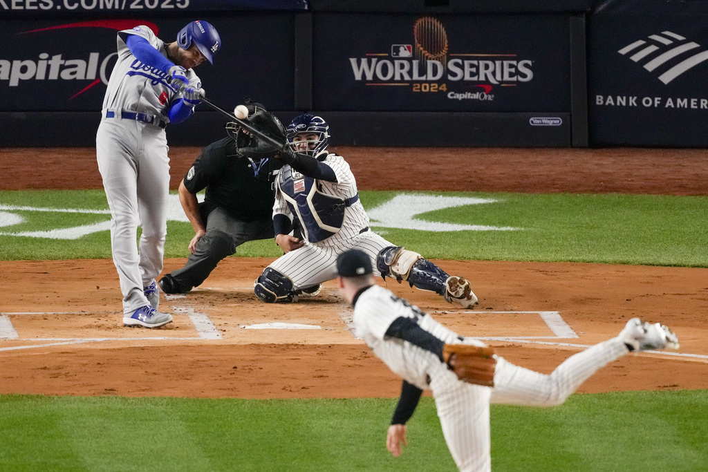 NEW YORK (AP) — Freddie Freeman tied George Springer’s record of homering in five straight World Series games, hitting a two-run drive off the New York Yankees’ Clarke Schmidt in the first inning to put the Los Angeles Dodgers ahead 2-0 in Game 3 on Monday night.