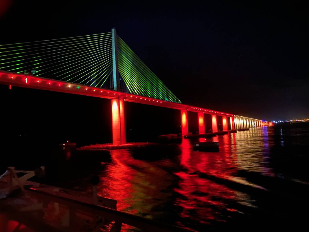 Jerald Hatton took this picture of the Sunshine Skyway Bridge while returning from a Caribbean cruise. So beautiful at night!