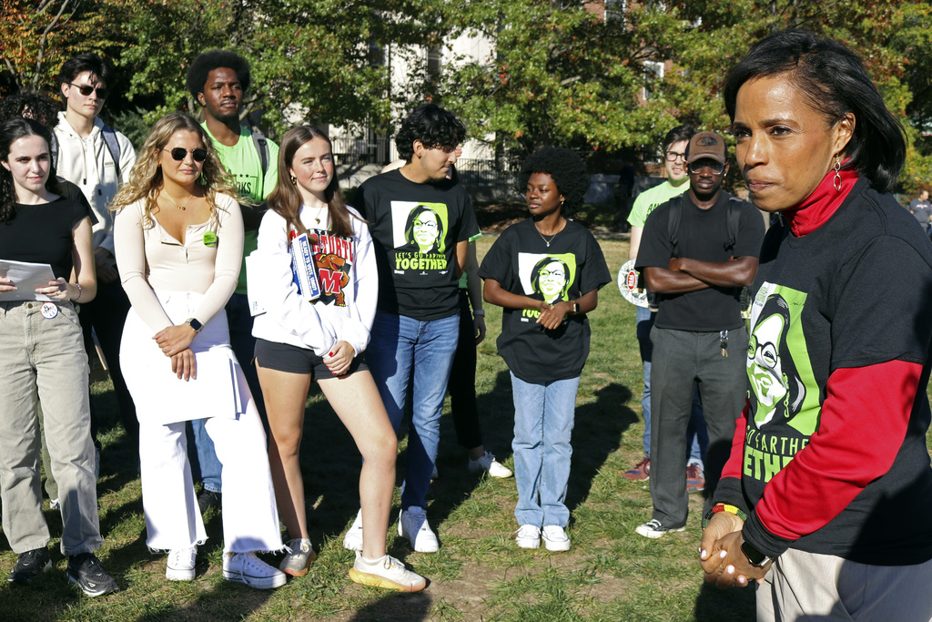 At the University of Maryland, College Park, the state’s flagship university, students gathered to hear Alsobrooks at a campaign stop.