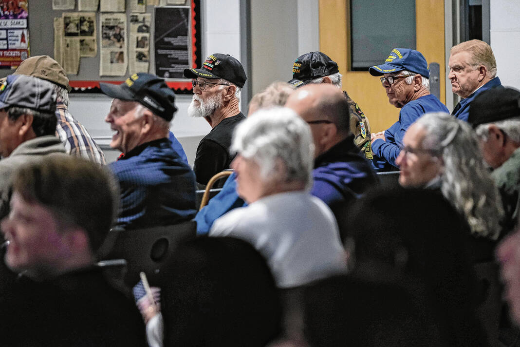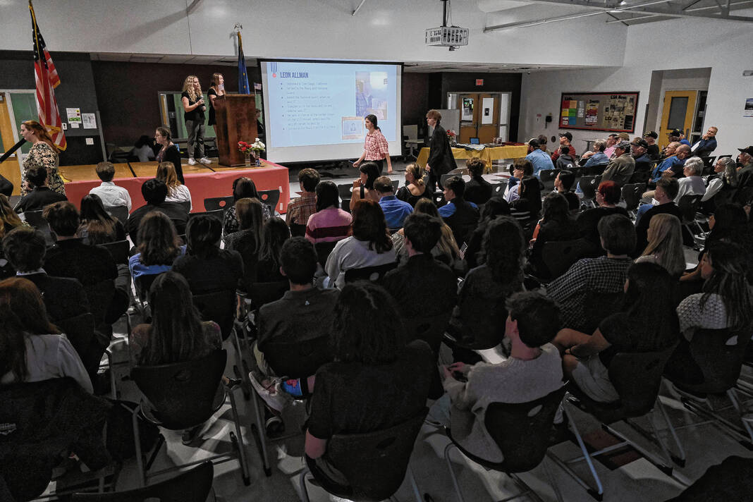 During the program, students stood before a podium and recounted details of each veteran’s service, with many of them sitting in the audience receiving grateful applause.